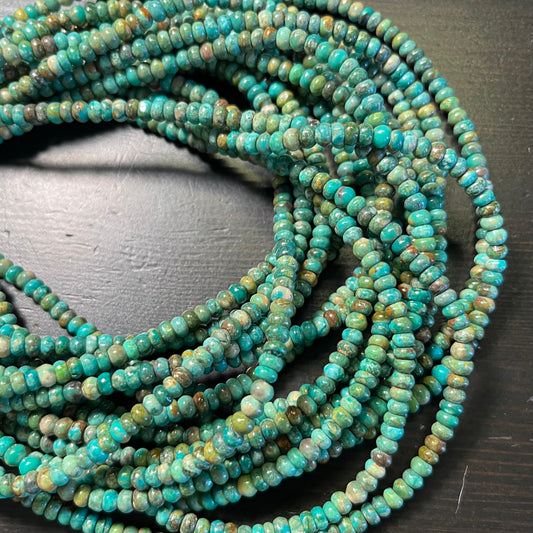 3mm Chinese Turquoise Heishi, Turquoise from Anhui. 15.5 inch strand.