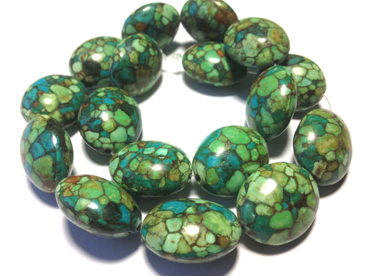 18x23mm Mosaic Magnesite Ovals, Green-blue, 16 inch strand.